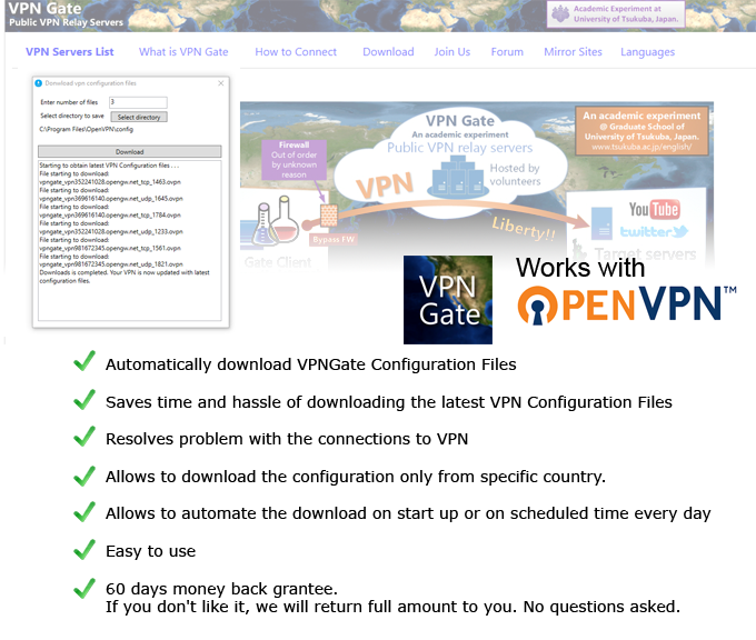 1. Saves time and hassle of downloading the latest VPN Gate configuration.